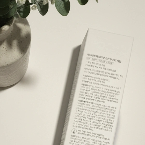 The Meditherapy Retinal Skin Booster Serum arrives in a compact white box about the size of a hand span. It is a sleek, dark pump bottle designed to minimize light exposure. Measuring 17.6cm tall and 4.2cm in diameter, its slim profile ensures a comfortable, one-handed grip for easy use.